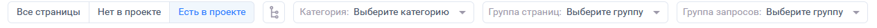 В отчёте доступны три режима: показ всех запросов из Вебмастера, показ запросов, которые отсутствуют в проекте, и режим, при котором отображаются только запросы, уже загруженные в проект SEOWORK. Последний позволяет использовать сегментацию — этот функционал включается автоматически при выборе соответствующего режима.