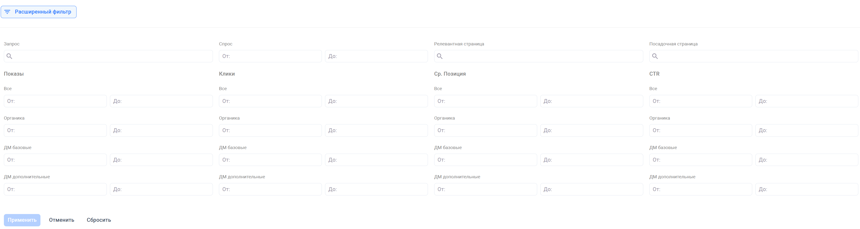 Фильтр отличается от того, что используется в отчёте «ДМ / Страницы».
